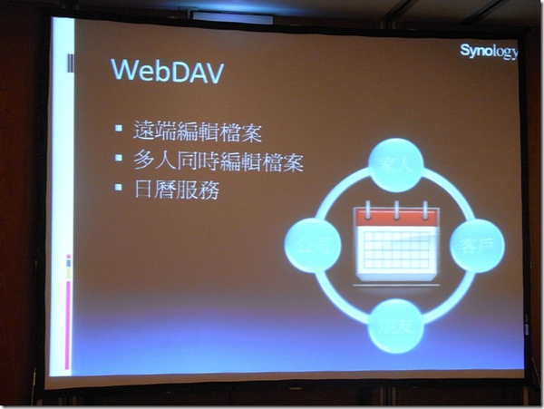 後半場的第二個部份,就是WebADV。在講師Chad的說明後,可以知道此功能與Google的Doc與calendar類似,可以透過Disk Station進行遠端編輯檔案、多人同時編輯檔案,以及發布個人行事曆。而這個功能,在當天並沒有實際示範,所以就等大家在Beta版測試時,再親自體驗看看吧!