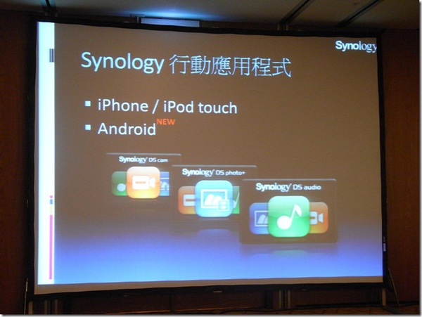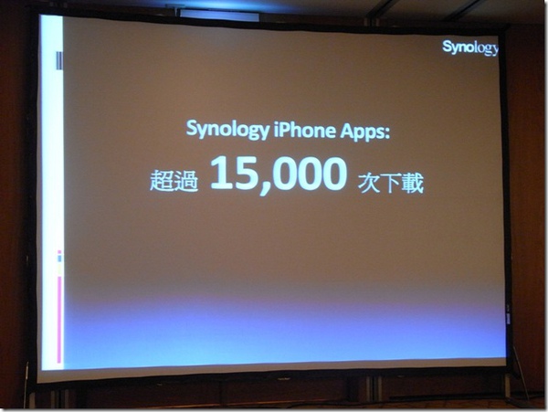 後半場最後一個部份,就是關於Synology行動應用程式的說明。由於之前只支援iPhone或iPod touch,所以只有這些裝置的使用者,有機會使用Synology行動應用程式。而這些程式放到Apple App Store上,已經有超過15000次的下載了。