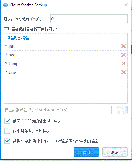 這幾天開始使用Cloud Station Backup,爬文到這篇比較類似我想問的之前比較困擾的是同步方式備份規則中有這麼一項"當檔案從來源刪除時,不刪除遠端備份資料夾的檔案"因為我有時還是會刪減舊檔案可否不勾選這個選項,等到發現誤刪時才從歷史版本恢復?(假如歷史版本夠的話)