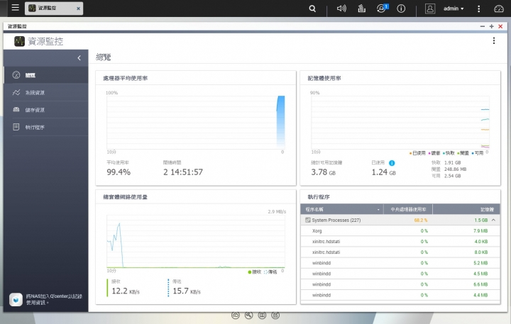 實際上以他牌 video station 觀看同一部影片, 整個 CPU resource 低於 10%