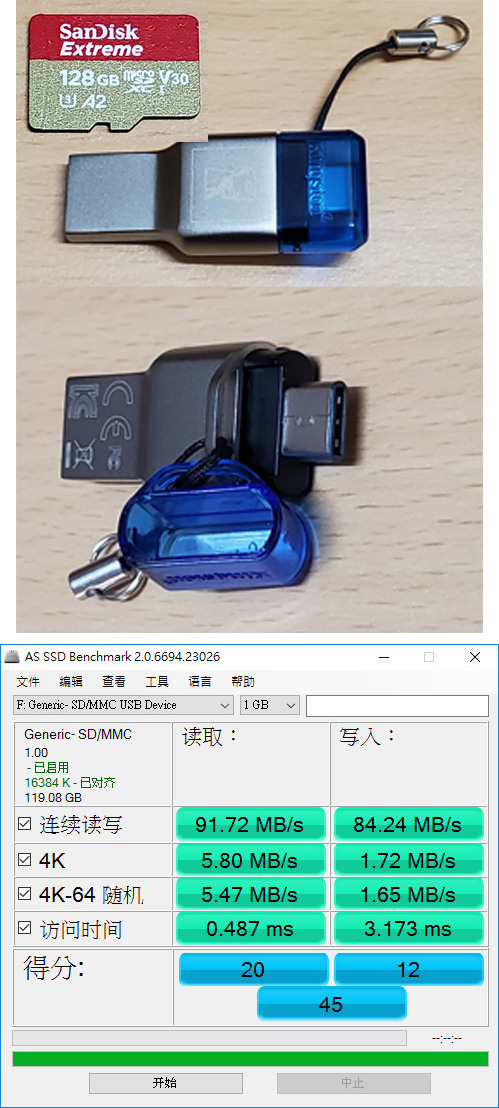 測試平台: P8B75-V 原生USB3.0作業系統:WIN10 1909記憶卡:SAMSUNG 三星 EVO Plus microSDXC UHS-1(U3) Class10 128GB記憶卡 台灣公司貨讀卡機:Transcend 創見 RDF5 USB3.0金士頓 USB3.0 高速多合一讀卡機 (FCR-HS4)用FCR-HS4測出來的竟然比RDF5慢,FCR-HS4新買的不到1個月