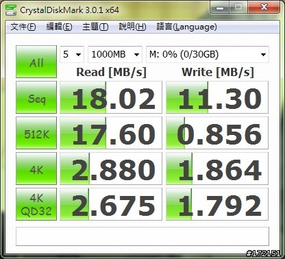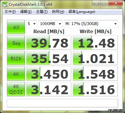 速度部分,經過CrystalDiskMark測試,在NB的USB2.0底下,速度會略低一些些,桌機+USB3.0的話...可能高點(推測)