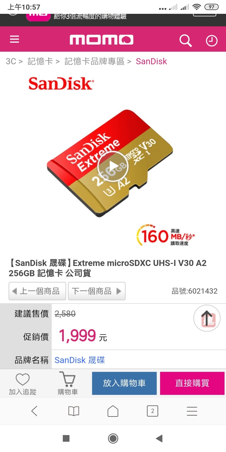 所以想買一塊寫入速度高達104MB/s的高速MicroSD記憶卡
