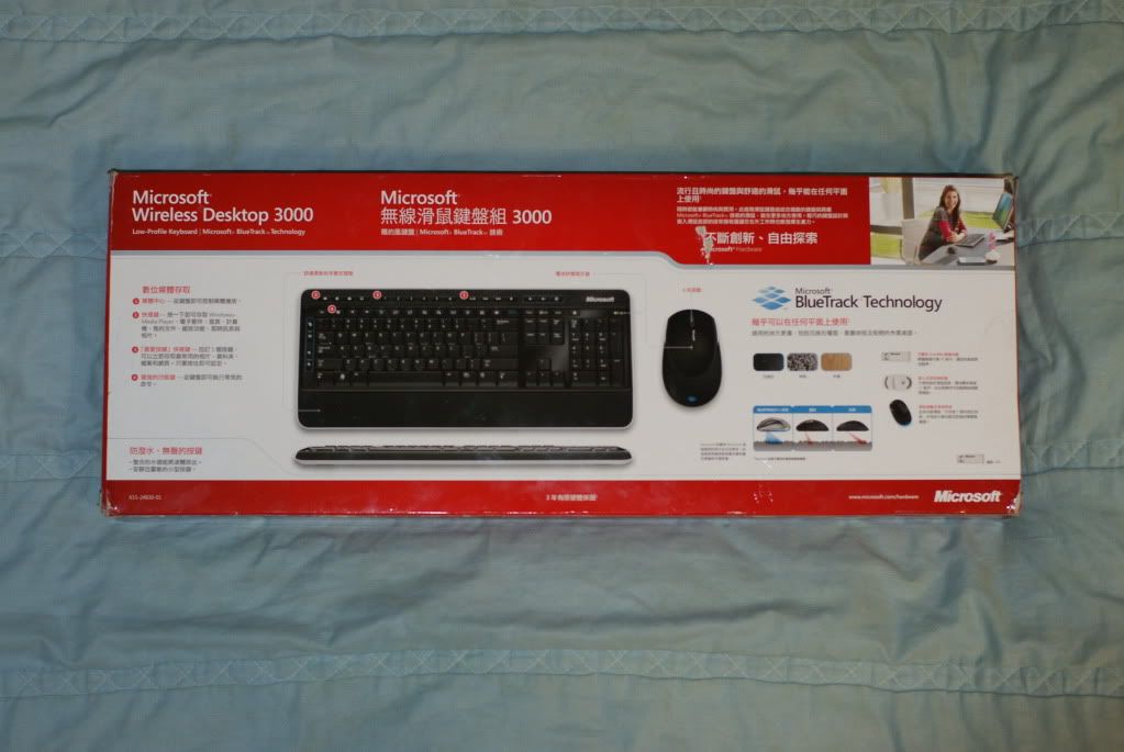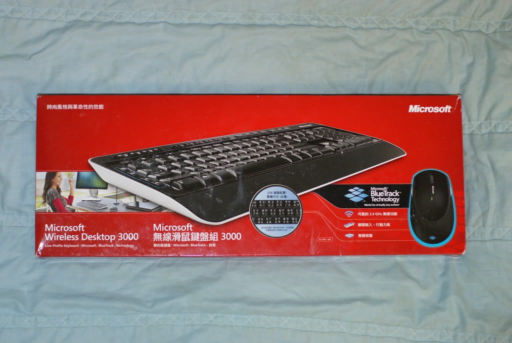 這組無線鍵盤滑鼠3000不占空間,讓你的桌面(這裡指放鍵盤滑鼠的桌面,不是螢幕上的桌面)看起來更整齊好整理。還有許多方便實用的快捷鍵,其中媒體播放的快捷我本來以為只支援Windows Media Player而已,試用後發現foobar2000也可以。另外還有防潑水設計,這個我沒試過,有興趣的人可以自己買一組回家試;無聲的按鍵,不大力按的話幾乎聽不到聲音。滑鼠採用的BlueTrack技術即使是在地毯上也可以使用,冬天很冷的時候可以躲在棉被裡使用電腦。