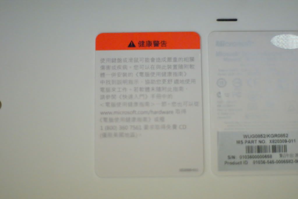 鍵盤背面的健康警告,不過平常會有人把鍵盤翻過來看的嗎?
