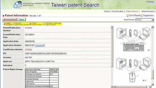 而且更重要的是Zippy終於取得專利權,專利號碼為I370986