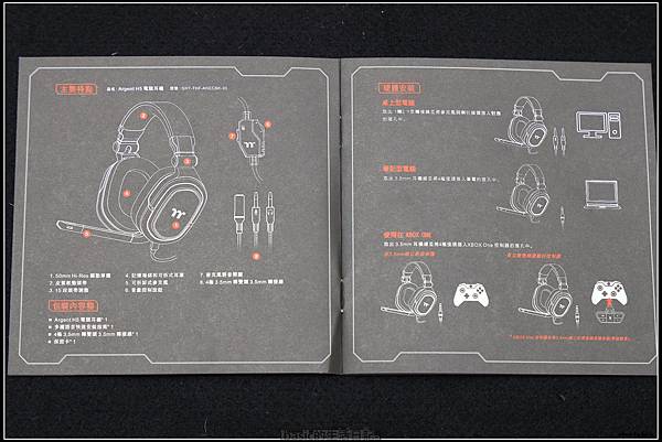 曜越的包裝質感相當不錯, 採用黑色底色的設計, 將耳機的特色都印在上面, 讓人一目瞭然..