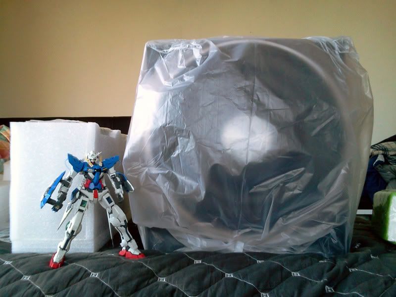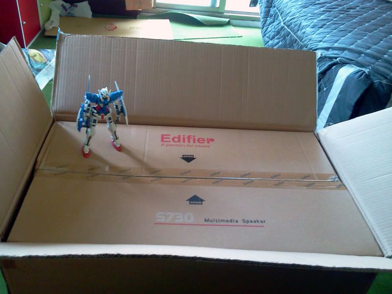 開箱啦,刀片劃開之後還有一箱,包裝相當用心,旁邊MG EXIA相較起來很小支。