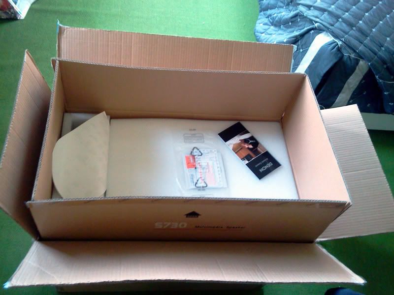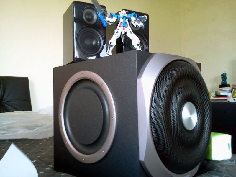拿開上面的東西後,可以看到一個超巨大的低音箱和兩個衛星喇叭,很沉啊。