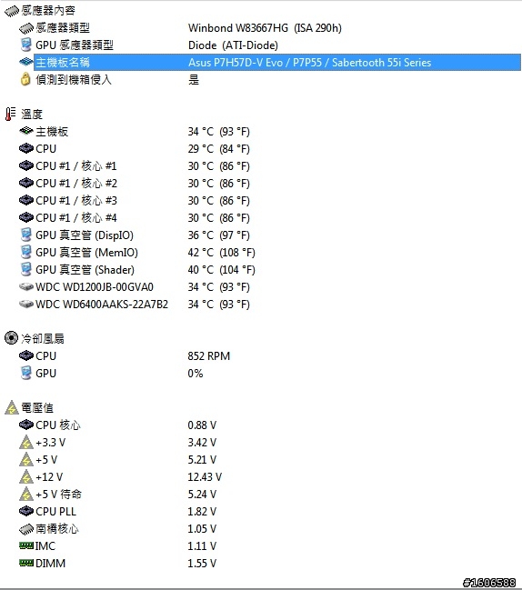 turecolor0713 wrote:側檔板 全拆 只吹電...(恕刪) 有超頻 應該有開tc省電吧不過還比室溫低4度 不太可能吧用空冷而且還是原廠風扇冷卻你散熱器的風最低也就是室溫的風也就是31度的風在冷卻你的散熱器熱源再怎麼低應該也是跟室溫差不多因為有通電運作應該是bios偵測溫度顯示是比實際上的溫度低好幾度像我用i7 開tb 開省電待機時1.2g 電壓0.888室溫29-30cpu溫度 最低是29-30間跳動