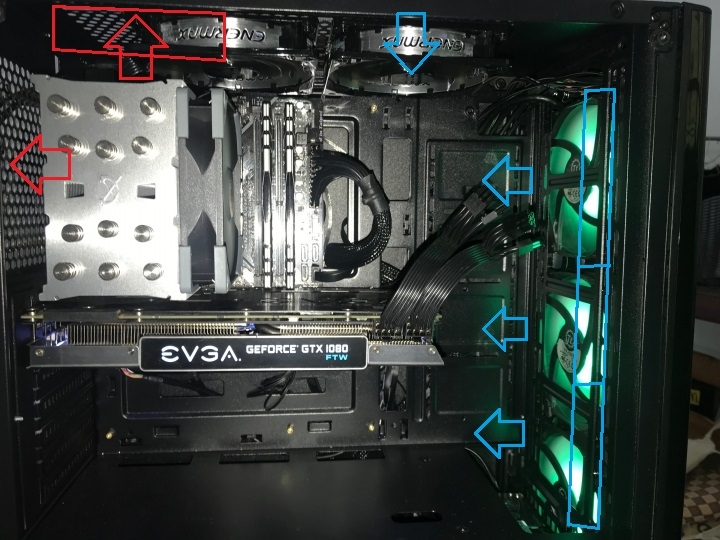 Arizinpaul wrote:CPU:8086k...(恕刪) 引用你1/30發的文 主機板請益如果主板還是Z370M-DS3H那基本上NH-D15跟SilverArrow IB-E Extreme就已經出局了, 會卡到顯卡, 除非換成顯卡安裝在第2條slot的主板無限五預設的風扇主打靜音轉速不過1200rpm, 換個貓頭鷹NH-F12 PWM或NF-A12x25 PWM之類的高風壓風扇都能改善散熱, 覺得貓扇太貴也可以考慮保銳D.F.Pressure高壓電競蝠機殼風扇的配置調整一下也能改善, 原本的配置右上方的氣流都浪費了, 建議頂部靠前的風扇改進風, 頂部靠後的風扇退到最後面到塔散上方抽風可以的話前置風扇都改從裡面裝, 多少能改善點進氣流而且也能加裝吸磁防塵濾網(銀欣FF123/FF143)話說貓頭鷹最近剛發表NH-U12A, 單塔七導管+雙A12x25, 散熱勝過U14甚至也才小輸D15一點, 可以觀望看看話說70~85度, 也不過是我以前Phenom II X4 965上4G玩遊戲的正常溫度, 而且這樣也用了7~8年...