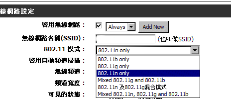 有些AP還是不能選802.11n only