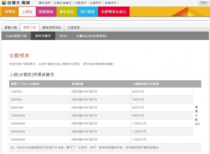 台灣大寬頻60M/20M