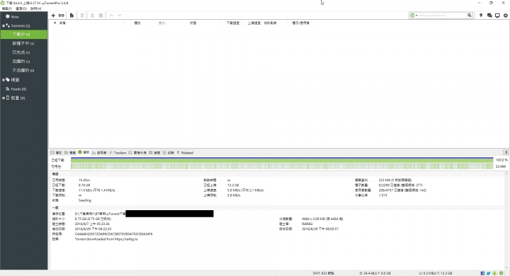 下載測試時間:2016.09.11 16:01:24~(我下載了13分鐘就主動停掉了)