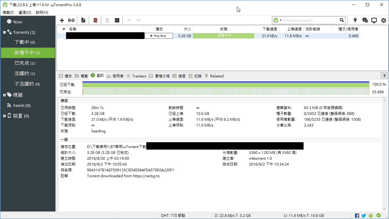 uTorrent(Pro版 3.4.8) BT下載軟體{沒有設定Hinet代理伺服器} 非付費會員 不須登入