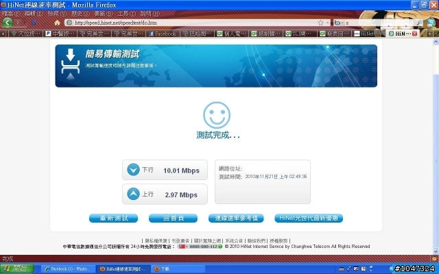 這是正在使用的FTTB 10M 無線筆電上測試的
