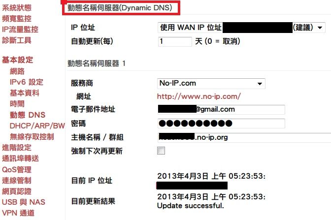 wu630509 wrote:要在網路監看一定要有...(恕刪) 可以用DDNSDVR直接接網際網路 那台DVR有DDNSIP分享器接網際網路 只要IP分享器有支援 亦可不過很可惜 樓主那台IP分享器沒有DDNS