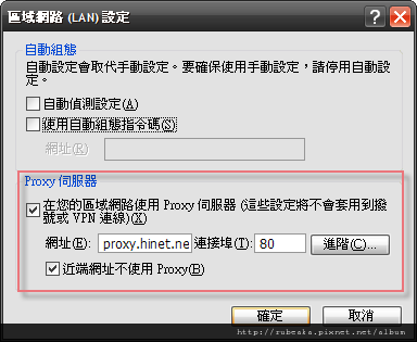未改前....慘不忍賭選擇「連線」標簽,並點擊「區域網路設定」接著,紅框圈起的區域是重點,請將兩個勾選框都打勾;並在網址區輸入"proxy.hinet.net",連接埠區輸入"80",確定大功告成,甚至不需要重新開瀏覽器,直接重新整理即可感受到網路的無遠弗屆XD..2015/07/12 22:00 測出的我的網速Hinet 100M/40M