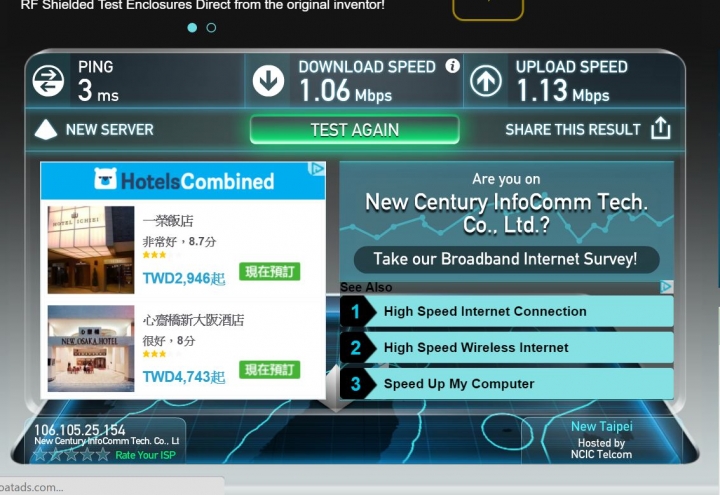 大大您已經一週了喔, 沒想到你比我還誇張, 真的是1M/1M, 我晚上我都用4G熱點才能看NETFLIX, 大大寬頻到底在搞什麼..cityhunter520 wrote:我是板橋區 我也是...(恕刪)