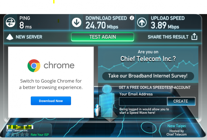 我因為跟朋友一起合租,所以辦了七天試用,大約兩個月前測試七天算正常後來上個禮拜開始 跟你說的一樣 速度很不穩定 但是只有持續三天...打LOL還算正常ping 4 正常 但是速度個位數再跑...有錢真的還是辦中華電信最好= ="我以前還辦過 新視波更慘過...你還是解約辦中華電信好了 如果玩遊戲是重度玩家 千萬不要使用 非中華電信的ISP業者...結語:千萬別貪小便宜 千萬別貪小便宜 千萬別貪小便宜