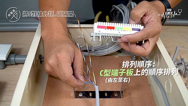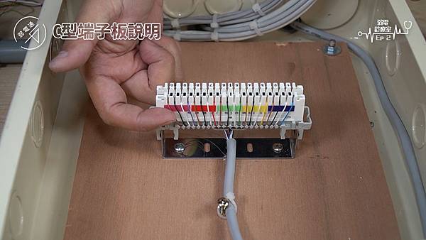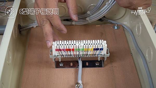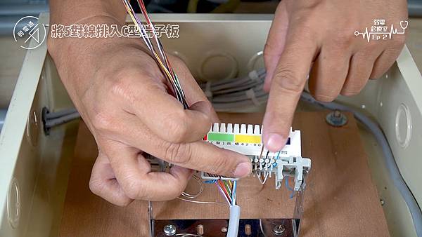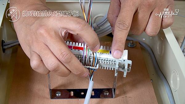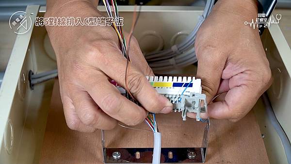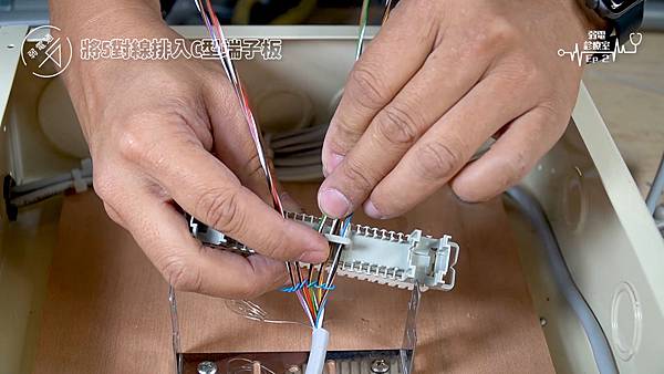 (將線路擺進C型端子板旁的勾槽中)