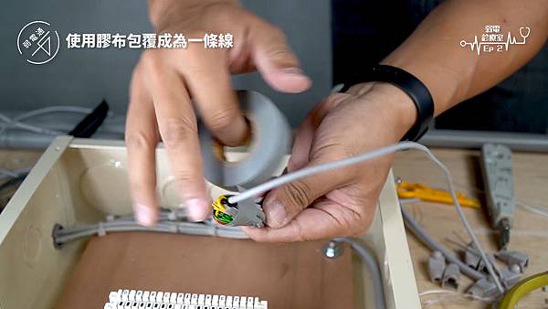 (使用絕緣膠帶將四對線+外線一起包起來)