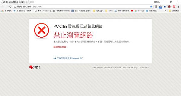 當你在網路上不小心點到危險網頁時,PC-cillin 2018雲端版會進行封鎖。