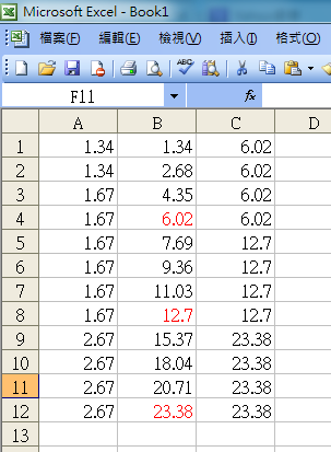 依照您所敘述的內容,不管上(加)班時數長短,結果只會分為三類:4, 8, 12 小時,經過倍數的加權計算後,計薪工時則為 6, 12.68, 23.36 三種,其實無需把公式弄的那麼複雜,只要使用簡單的雙層 IF 判斷式來計算即可!註:除非是我對敘述的內容理解有誤,或者想計算至每小時的薪資,才需使用較詳細的公式!