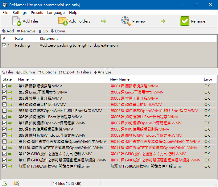 檔名是(1)....一直到(99),我想改成(001)... ... 一直到(099)...(恕刪)