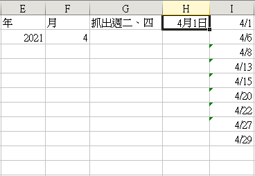想請問如何依序抓出每週三、週五的日期顯示呢