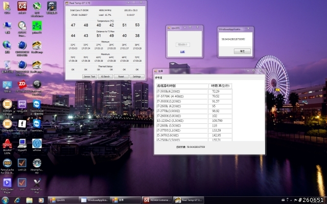 分享一下i7-3930k 超頻5G分數58.6434280187509秒平常就都5G穩穩用第二次測試i7-3930k比第一次快一點點 分數58.51375276875秒再來關防毒第三次跑 又快一點點 分數58.490081900049秒