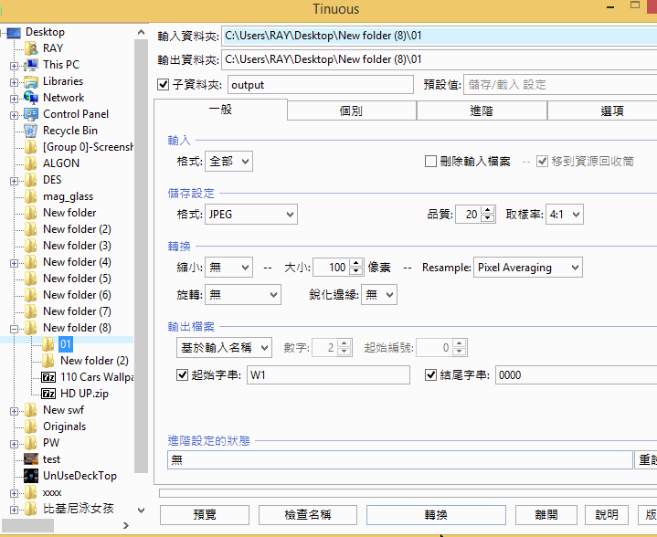 最近要壓縮大量漫畫 是使用Caesium Portable雖然快速不失真 但不能含ZIP資料夾一起壓縮圖片 我若是拖曳3集漫畫變成視窗內001~195會有3集漫畫圖檔重疊 輸出檔案時可能會被覆蓋 想請問看有什麼工具可以丟資料夾就可以一起壓縮裡面的圖片大小?