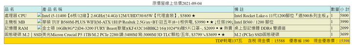 因為雷擊導致以下四個零件壞掉,小弟我只想要重買處理器+主機板+記憶體+固態硬碟;預算21000左右,煩請各位網友幫我搭配🙏
