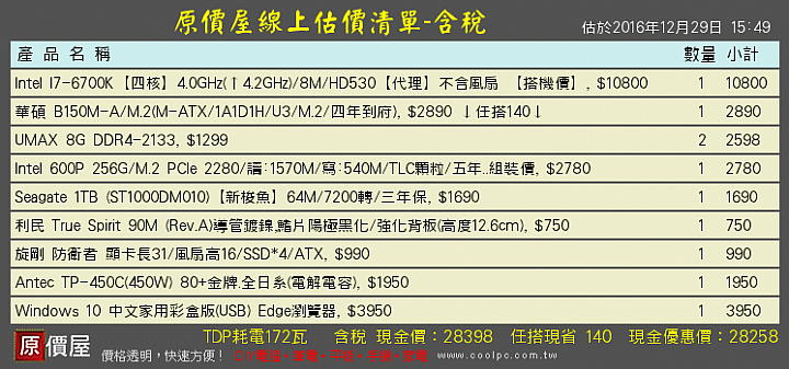 雖說你比較傾向使用品牌機,但我還是厚臉皮給你一張組裝單子~