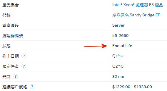 timliu5358 wrote:請問要買較新的七代的I5-7400 還是買庫存6代6400就堪用了呢? ...(恕刪) 6400 都還沒停產, 庫存什麼?比我正在用的這顆 停產貨, 可年輕多了...看見沒? 我這顆是 2015 第2季停產後, 2015 第3季 6400 才推出..我這顆這麼LKK的 E5-2660 也就是所謂的 洋垃圾,都還沒遇到什麼軟體不能跑, 有什麼系統不能裝,你在擔心 6400 什麼?電腦是用來跑軟體, 又不是來比前衝..要 比前衝, 那要銀彈要很足...