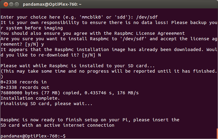 Linux的寫入Image的方式很簡單,只要打開Terminal輸入下列三行指令即可完成。