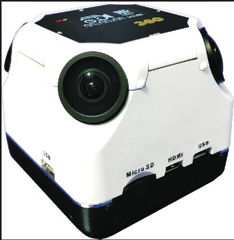 他是用一顆邊緣解析度很好的魚眼鏡頭去實現全景360(鏡頭朝上) , 或是180度( 鏡頭朝前)
