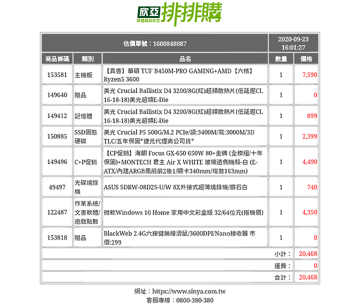 dextererin wrote:請問大大我這單還有要(恕刪) 你要拿3支8g嗎?Cpu+mb的組合有送有送一支8g ram再補一個單支就好我看到了送的是3200 你選3600難怪貴了幾百拿3200就好 到了一個程度偏無感錢放別的地方ssd在原價屋買效能型黑標sn750 500g 2170三星970 evo 500g 2350這2間不輸美光也不用怕什麼換料如果不想跑2家如果一般便宜效能型可以拿威剛sx8200 pro一般型可拿a2000或sn550其實使用上都無感因為ssd太快了power看要不拿evga 現在有幾款有活動9月底前登錄送郵政禮卷可以拿郵政禮卷去郵局換現金詳情https://tw.evga.com/articles/01437/C+p組合也可以看看你目前的組合2490+1890=4380可以考慮海韻gx650+air x白色的組合4490一樣十年保+全模組多110元扣打下海看你要不要照你單改回ram 8gx2power改海韻 大約貴110君主是cp高預算夠我這2家我會選海韻