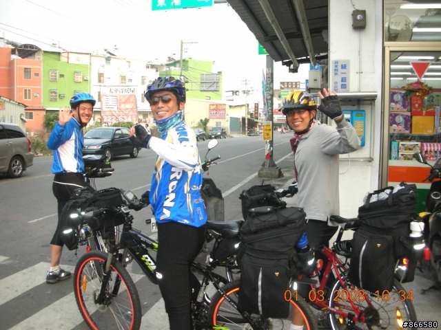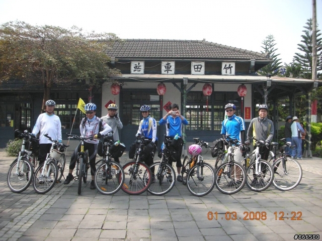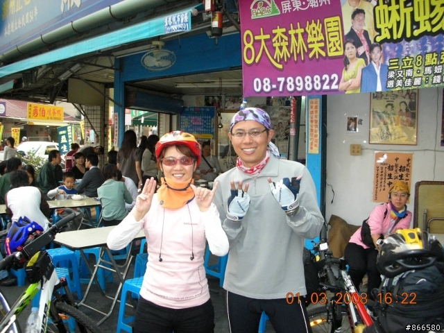 我也到家了不知道為什麼頭有點痛身體有點累希望大叔可以順利完成任務不然就廢了這10天的假期了要加油啊 陪騎之餘還會你們助念來看今天的行程.景點.還有最重要的美食吧一早(其實也不早了)大家在來來豆漿吃早點經歷了2次的迷路終於來到竹田車站 先幫這次要環島的兩勇+一拖油瓶來一張第二騎車來到竹田車站.也是第二台車啦這次來舉個車吧.蝦密~!!會擋到車站扛棒.所以被要求半蹲下午一點了.終於可以吃午餐了 瞧 D腳們一直在說吃我吃我呢菜一上桌 根據本團優良之傳統 要先拍過遺照才能吃表示本團有慈悲為懷的胸襟七菜一湯通通到齊 來個大合照吧 不然它們以後沒機會被拍了吃飽後來到萬金聖母殿 午休這是根據旗山行後 本團建立的另一優良傳統硬要傑夫拍照的 玩扯鈴的小朋友SUSAN姐姐真的是來午休的瞧~!! 她們睡的多香甜啊看不清楚嗎??來靠近一點不要怕休息過後來到潮州吃燒冷冰J 洗燒 A合體~~!!!燒~冷~冰~~~我吃起來感覺還好大家吃得多認真啊大叔說他快不行了 所以在路邊上起廁所來了一臉的疲憊這樣真的能成功嗎?? 有點擔憂哩在此送別環島的二勇+一拖油瓶SUSAN姐姐依依不捨的喜極而泣這是在笑還是哭啊之後一路來到了舊鐵橋本來要看夕陽的 可是太陽下班回家了來看一下舊鐵橋的景色吧同一地點不同時間 各有各的美感啦在瑞豐夜市晚餐.我的是咖裡拉麵感謝COCO提供秘密車庫讓大夥停車大叔要繼續堅持啊 大家一直勸退你只是要激勵你 你可以的回來要寫遊記分享一下喔PO完圖才發現我像機的日期好像多了一天