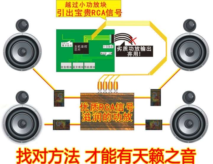 我们可以观察我们家用的影碟机、CD机、甚至电视机,他们都有RCA信号输出,厂商开放这个接口,是为了方便用户接功放,实现更好的声音,但是唯独我们的汽车主机,大都并不开放这个RCA接口。licysaab wrote: