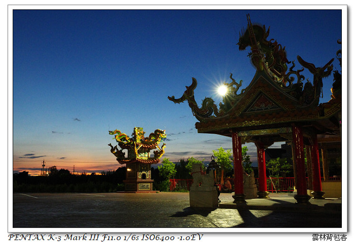 到了山下,西邊還有一些餘暉,昏暗的廟埕一盞明燈,手持測試1650PLM這顆鏡頭的星芒,ISO6400還是很舒服。