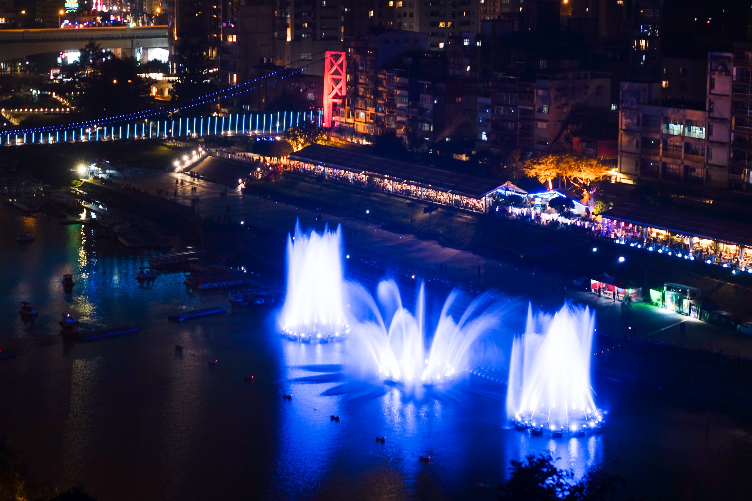 水舞百看不厭有沒有發現網路找的到的相片沒有我這個角度的,晚上在沒有路燈的山上找拍攝點真的很可怕,偶天生膽小只拍了一場就落跑了,還好我的產量很大。Touchless Shutter拍(只能拍JPEG)沒套用任何設定然後LR調整果然還是調整一下比較漂亮