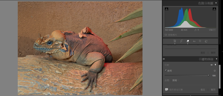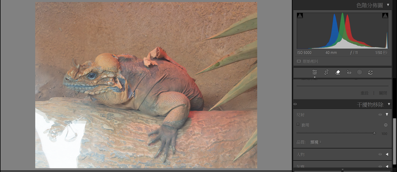 犀牛鬣蜥OM SYSTEM OM-1 + M.ZUIKO DIGITAL ED 40-150mm F2.8 PRO 手持80mm ISO320 f/11 1/50秒 無裁切享受科技以前反光無法移除現在一鍵搞定