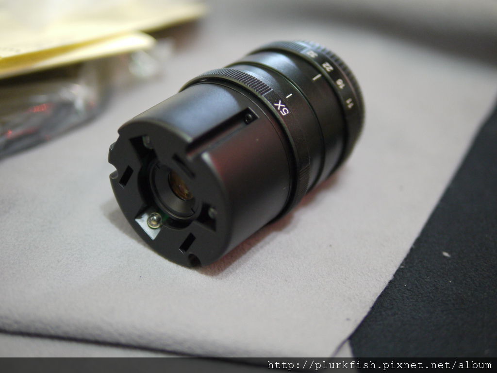 終於現身了!!像是大砲一般的鏡頭!可以看到他有5X(畫面左邊一點有4X,不過沒拍到),然後光圈分別有11, 16, 22, 32四段。
