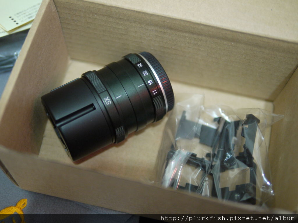 把箱子小心的拿了出來!可以看到他們主要也就是想要搶無反射鏡單眼相機市場(mirrorless cameras),所以他們這次作的分別是給m4/3跟SONY NEX的E-mount這兩種目前最常見的系統使用的鏡頭,我手邊是GF1,所以買的是m4/3 mount。