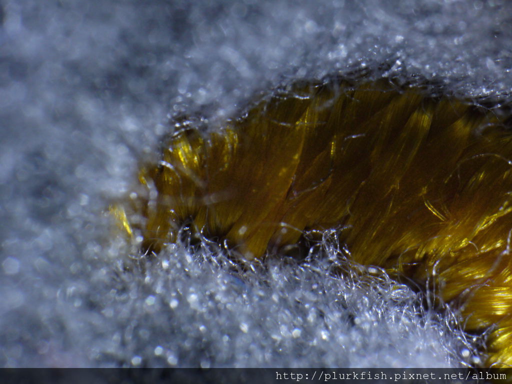 其實也是Leica那顆鏡頭上的東西,就是裝鏡頭時候的那個紅點,Leica這顆鏡頭是有突起來的一顆圓球,用手摸都會覺得是很圓的東西,在顯微鏡頭下,真的是凡走過必留下痕跡啊,一些細微的紋路都看得到了。(這樣如果拿來拍皺紋不知道會怎樣)