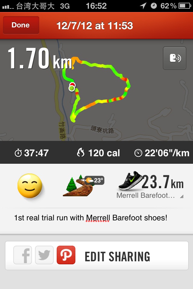 果然隔行如隔山阿.... 想說都已經跑了那麼久了.... 沒想到是平時的1/4速度不到.... 還是不能太小看越野跑這回事.....