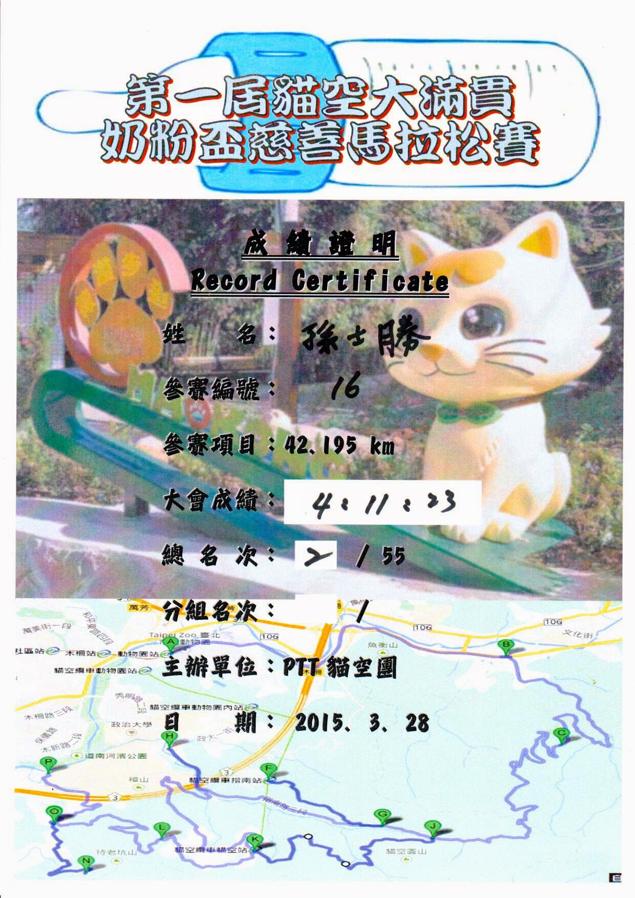 本日數據: sssun路跑誌_20150328_第一屆貓空大滿貫奶粉盃慈善馬拉松 @ 4:11:24 總2終於上凸台啦啦啦