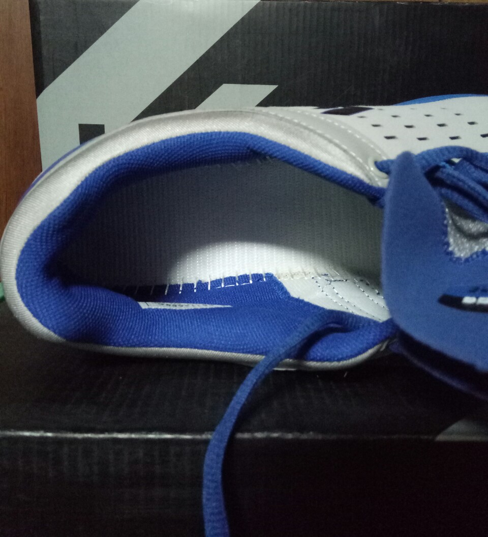 使用單一密度的EVA材質(藍色部分是上色的),前掌約1.6mm(大概量的),後跟約2.2mm(大概量的)。鞋內部的走線尚可,雖然只有一層網布,但是腳感不硬(中等)偏軟。