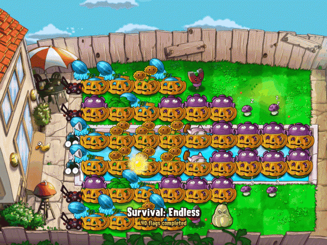 我用 iPad2 玩到 40 關才稍微有點 lag,用這陣型還不錯,但玉米泡太少了下面撐到1678 Flags, 原來那白色南瓜是別的平台上才有,聽說強很多,我跟著做,到 54 Flags 還沒事http://www.youtube.com/watch?v=h8Tya-ZOs70而這是 iPad上撐到280-286,不過看他玩得好累http://www.youtube.com/watch?v=rPTJXXUF-uQ